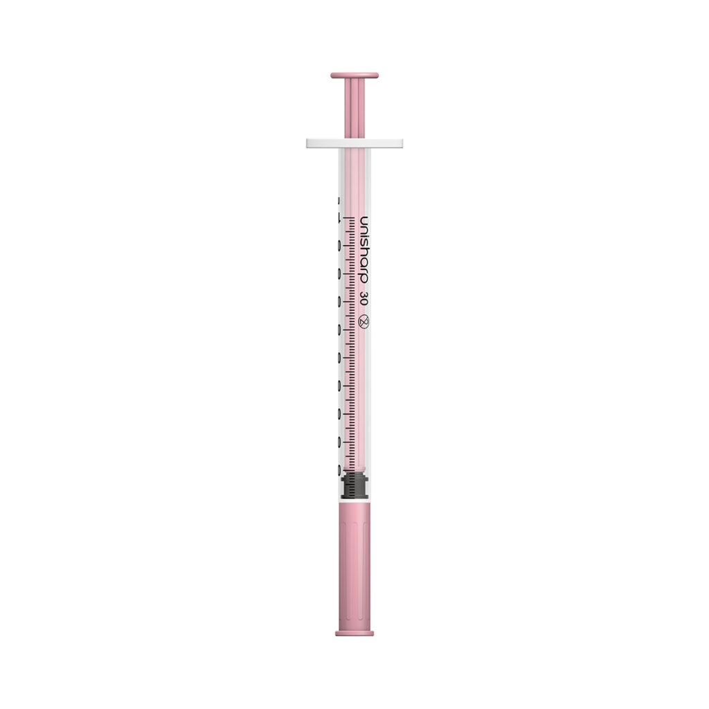 Essential 10 pack of 1ml Unisharp syringes with 30G fixed needles.